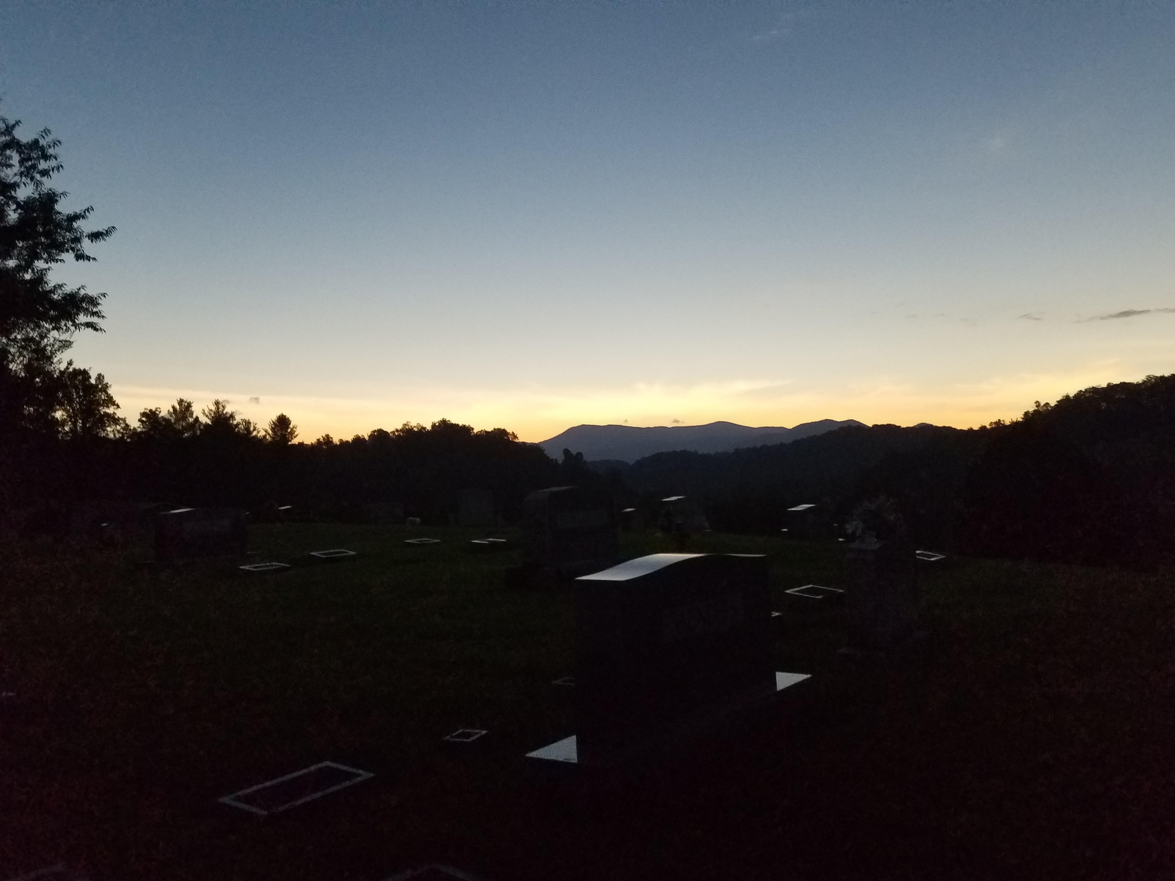We lay on our backs on blankets, spread there in the graveyard, and watched the sun disappear. Behind us sprang up the colors of sunset over the mountains like a southern aurora, glowing over the town beyond our view and its multicultured population, evinced by street signs bearing names in both English and Cherokee.