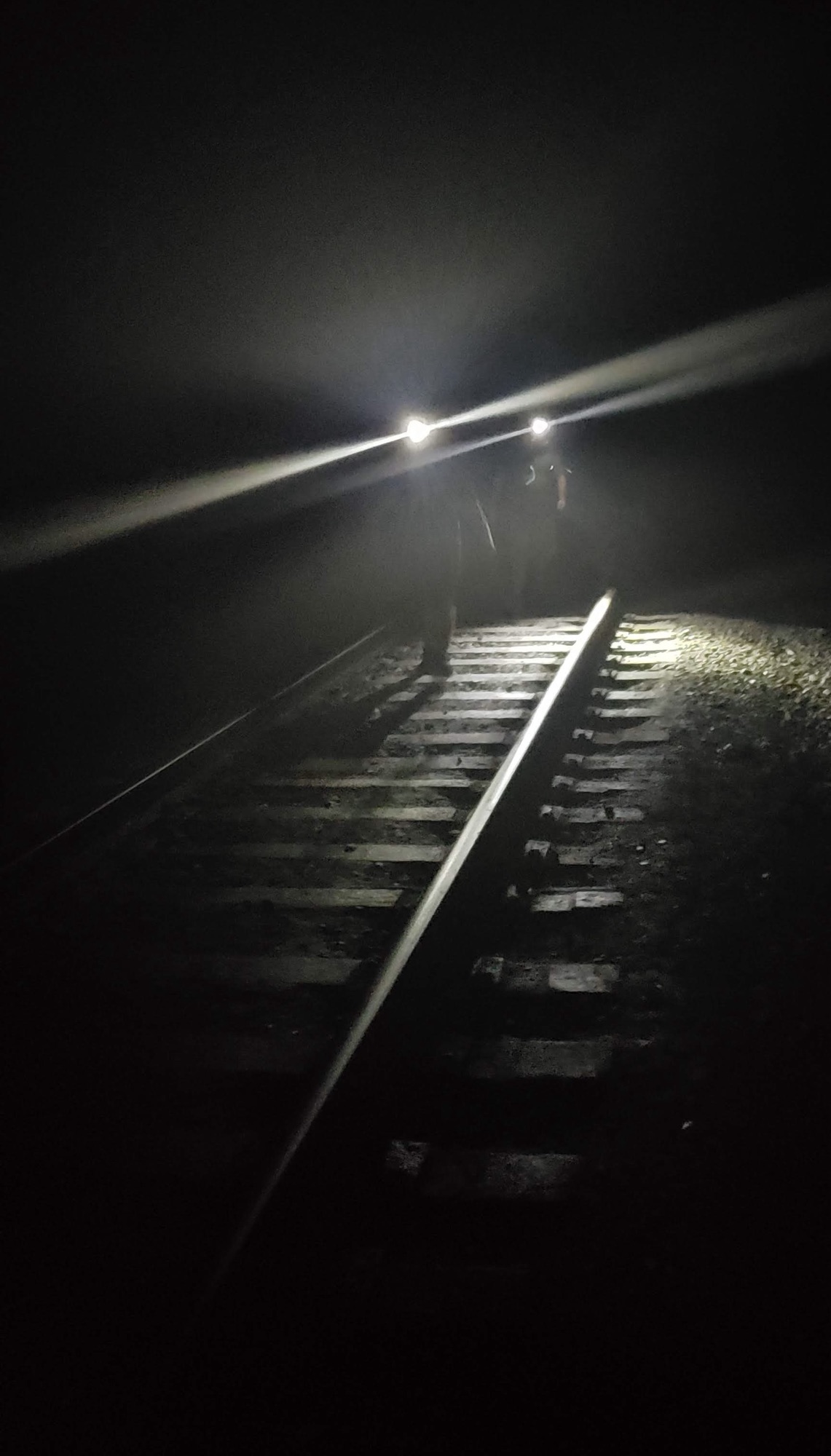 We had reconvened at the campsite Saturday evening after a day of caving and our friend Sam suggested that we take a field trip to an old train tunnel not far from where we were. Night was falling, and he told us that the tunnel was supposedly haunted; we jumped at the opportunity to check it out. Alison stayed at camp with some friends while Carl, Arwyn, and I joined Sam and a few others to see the tunnel. After driving for a while, we turned onto a gravel road, which we followed for the final few bumpy miles before pulling into a cut-out to our left and disembarking. We initially took the first trail we saw, inclining steeply into the woods; before long, though, we saw headlamps moving further along in the woods and called out, learning that we had actually overlooked the correct trail. We doubled back and corrected course, and were much happier for it as this trail was nowhere near as steep as the initial one; soon, we crested this smaller hill and were able to see the tunnel entrance. It was a perfect night for such an outing, with a light mist forming at the mouth of the tunnel; we stared up at the brickwork that states the obvious in painstaking letters. We spent a few minutes looking around the entrance, then started our stroll through. We stopped a few times, listening; our footfalls echoed hollowly against the bricks that surrounded us. It was easy to imagine how the haunted reputation could begin; an undercurrent of our own voices bounced back at us mockingly.